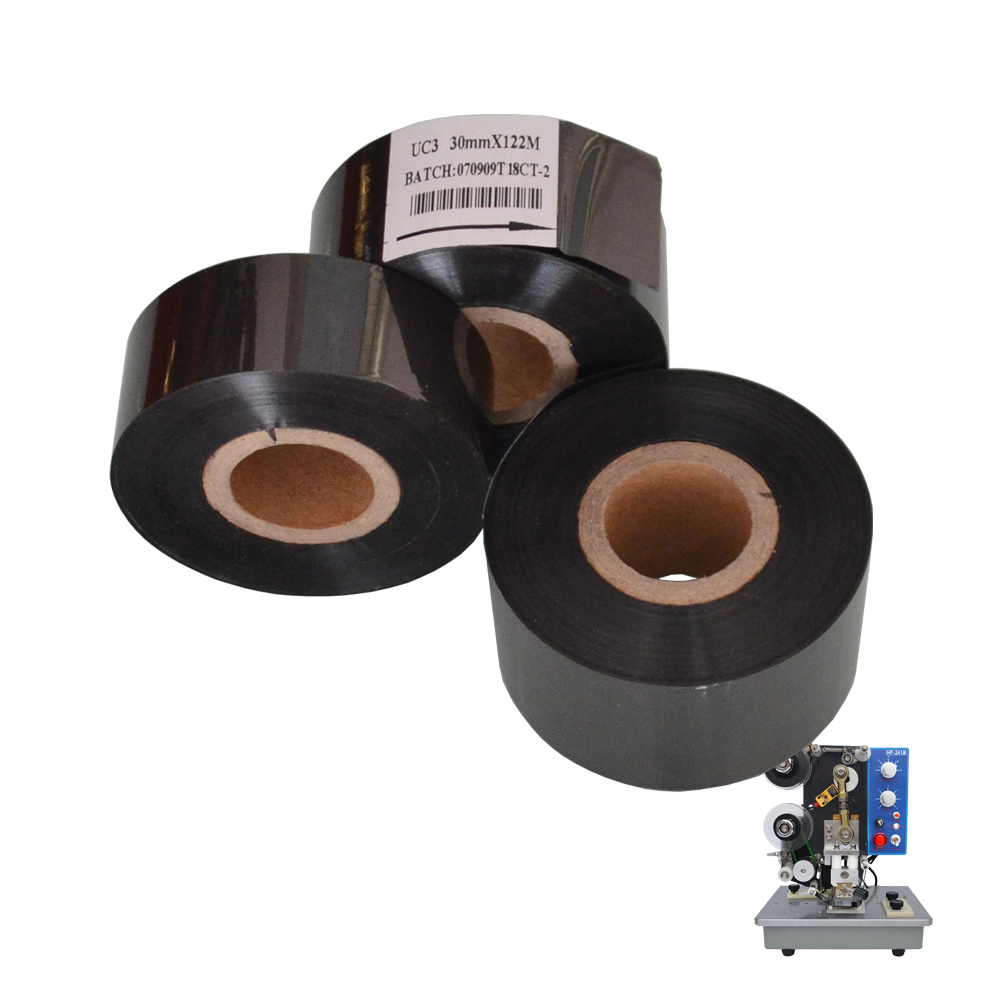 The date code printing foil tape is matched with the coding machine equipment and needs to be equipped with word particles. After the word particles are heated through the heating block, the ink on the ribbon is attached to the printing material through pressure.