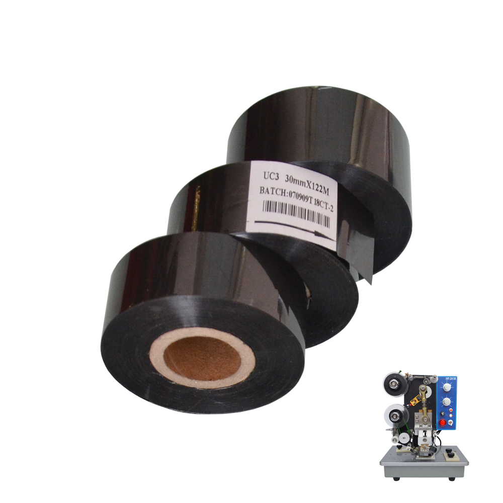 Hot stamp coding printer machine ribbonis a product with a wide range of uses and huge consumption. With the rapid development of China's information technology and the continuous expansion and deepening of the field of computer application, people have an increasing demand for high-speed and high-quality output printing. However, the traditional printing methods in the market are difficult to meet the all-round needs of users in terms of price, printing quality and printing speed. Due to the use of high-strength ultra-thin film and high concentration ink, and the way of single use, the heat transfer coding ribbon has high character quality and long service life, and overcomes the defects of ink-jet paper bleeding and water solubility. The heat transfer method has no requirements for printing medium, which can be used in ordinary paper, recycled paper, wax paper, ordinary film, envelope High definition printing on label paper and cloth.